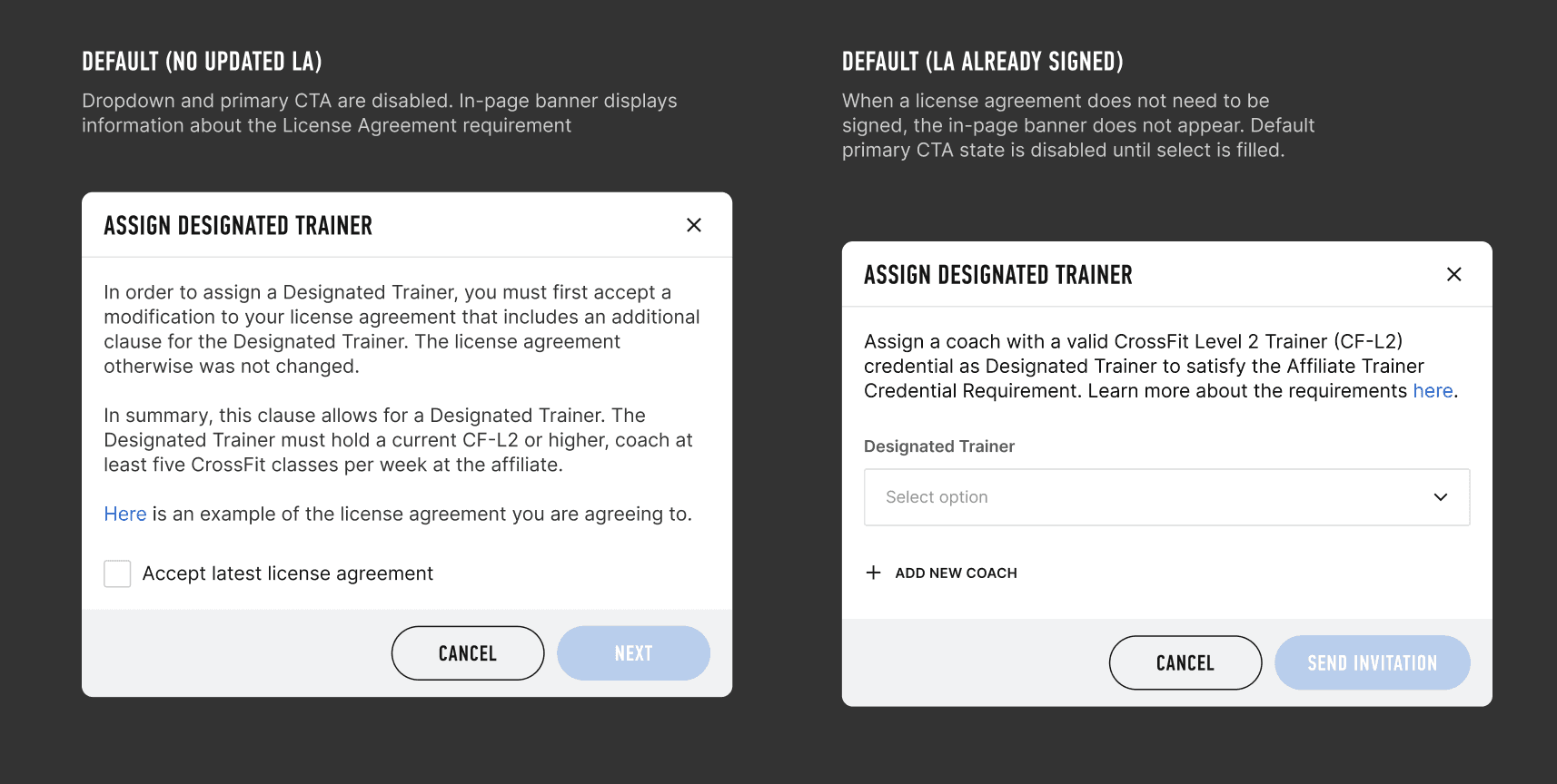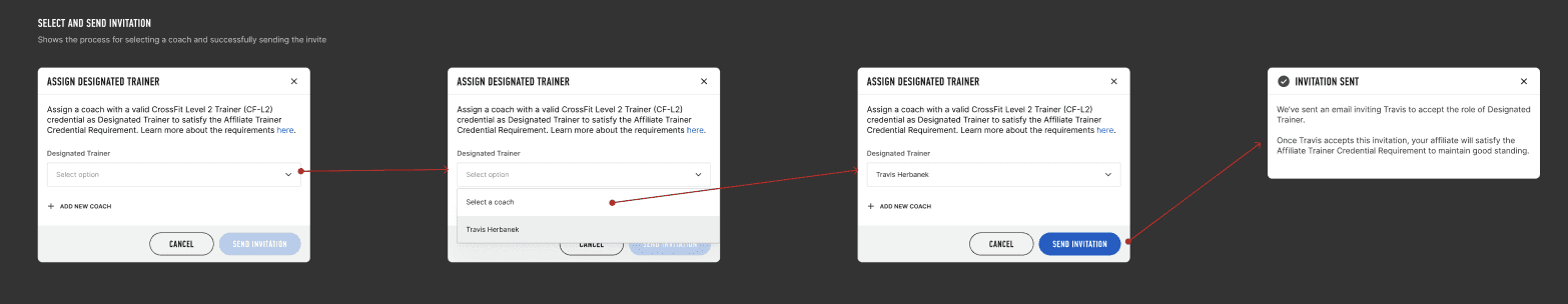 Working closely with product, engineering, and stakeholders, I identified the edge cases that would make or break the experience: what happens when a trainer leaves? What if no eligible trainer exists? Getting clarity on these scenarios upfront was what made it possible to design a flow that was both legally sound and actually usable.